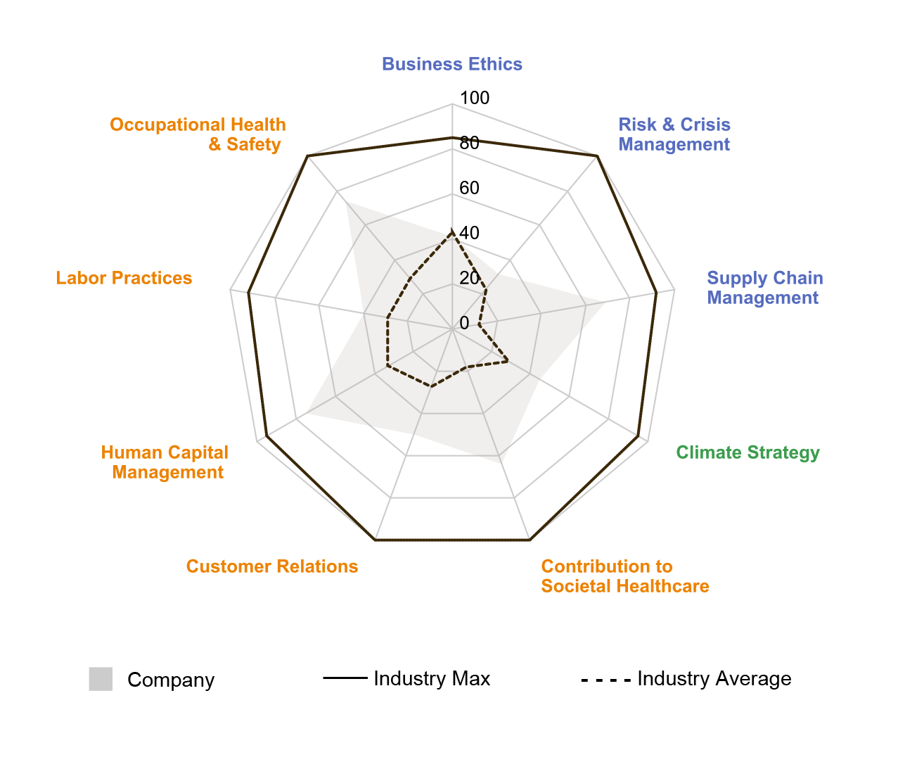 从关键驱动因素来看,云康的人力资本管理、公司治理、商业道德三大板块成为得分增长的 “三驾马车”。其中,人力资本管理以 75 分的高分断层领先,远超 27 分的行业平均;供应链管理 69 分、职业健康与安全 74 分等表现抢眼,印证了云康精益运营的硬实力。